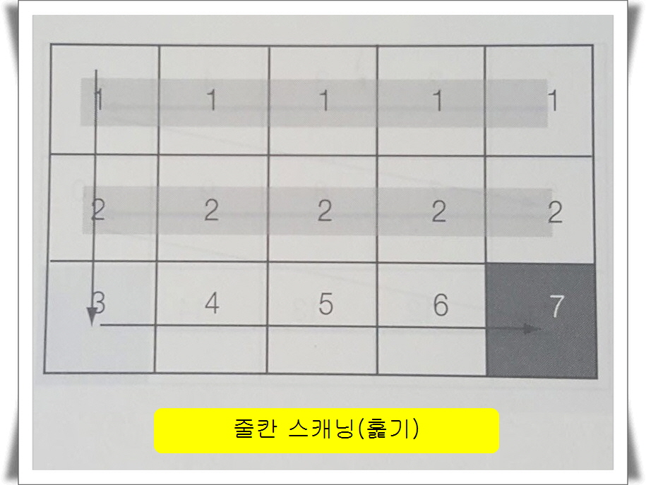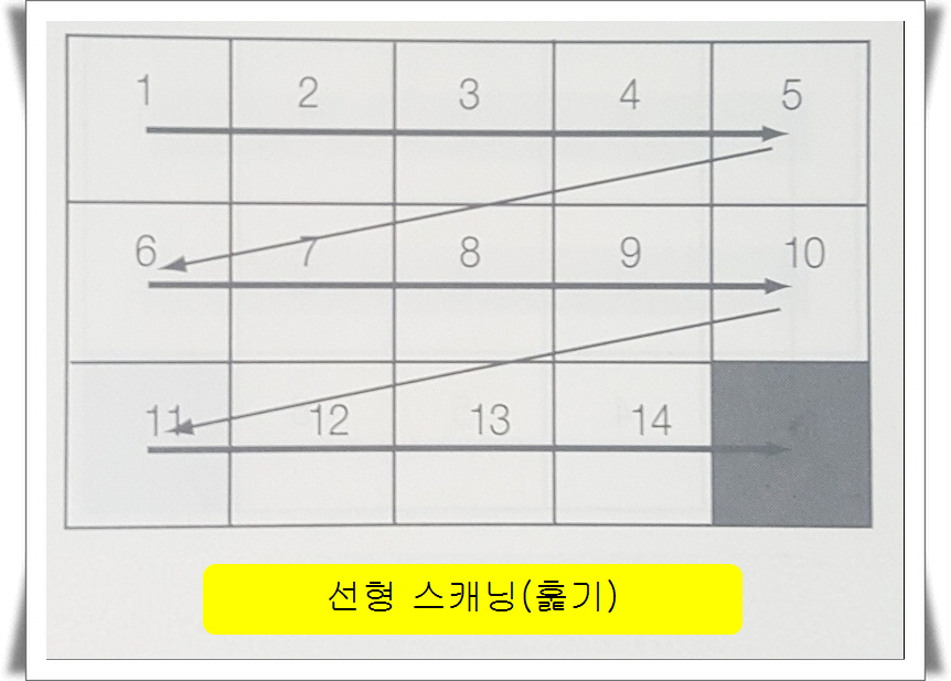 ●선형 스캐닝 : 가로 순서대로 모든 항목을 훑기